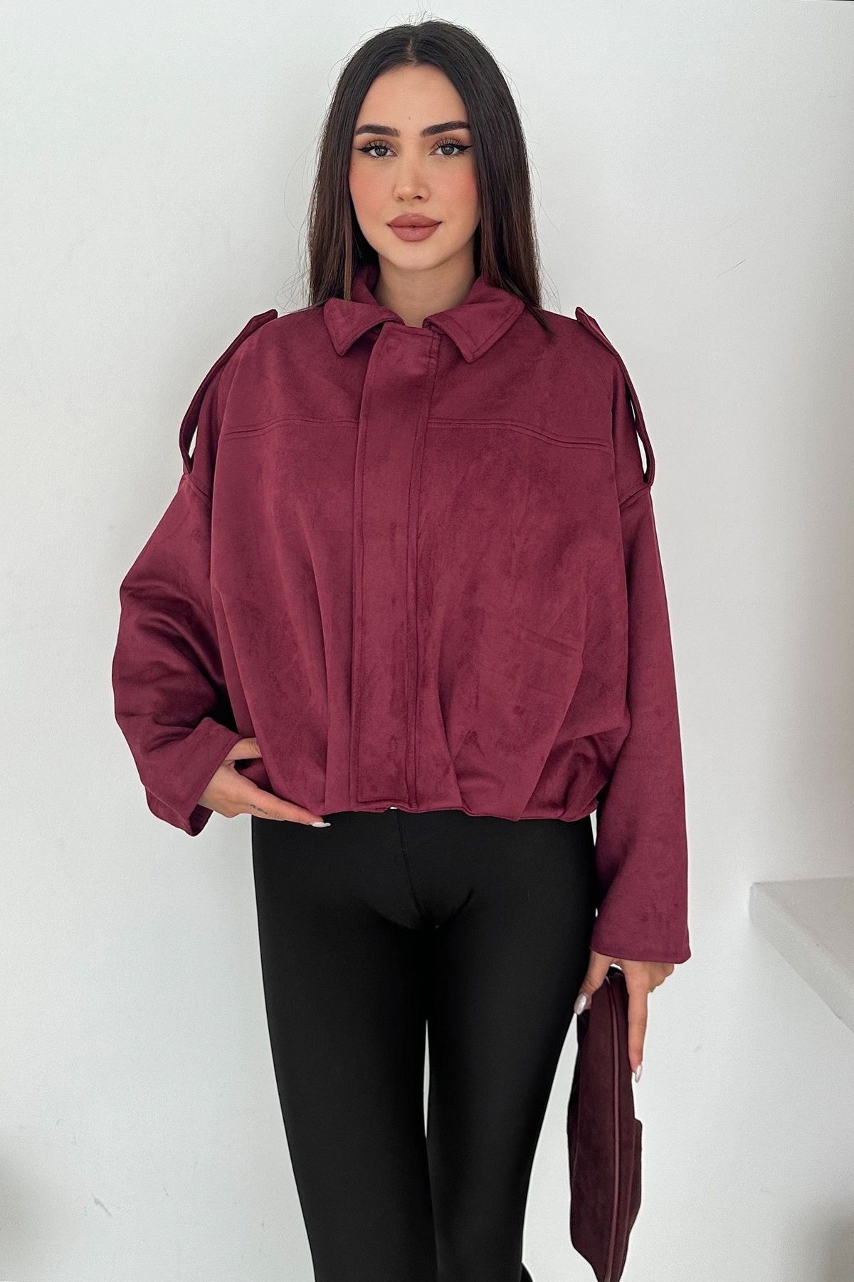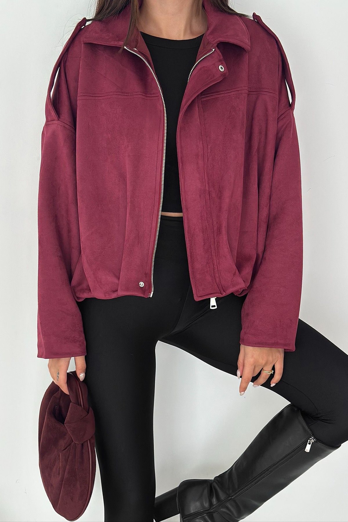 Kadın Bordo Oversize Süet Fermuarlı Ceket VS01267 (VS01267)