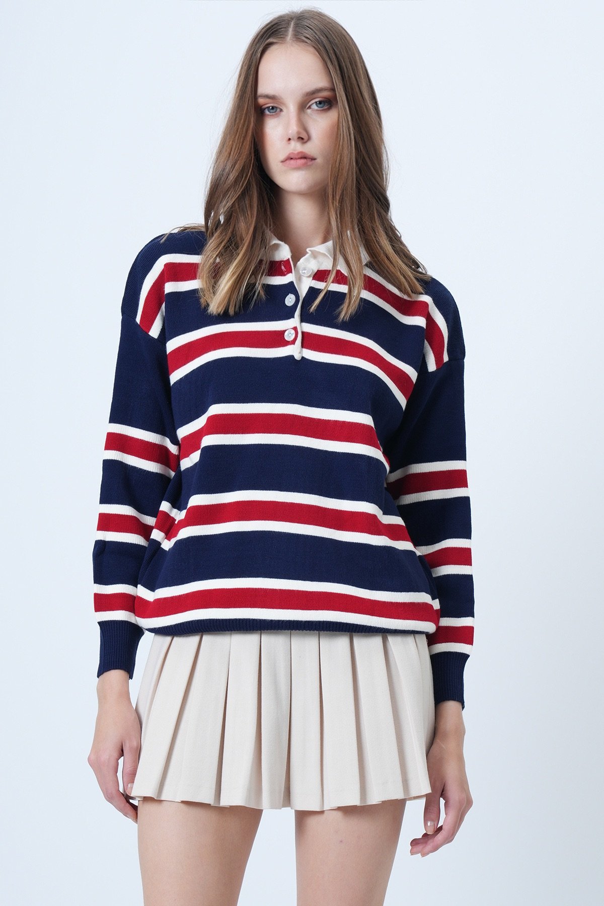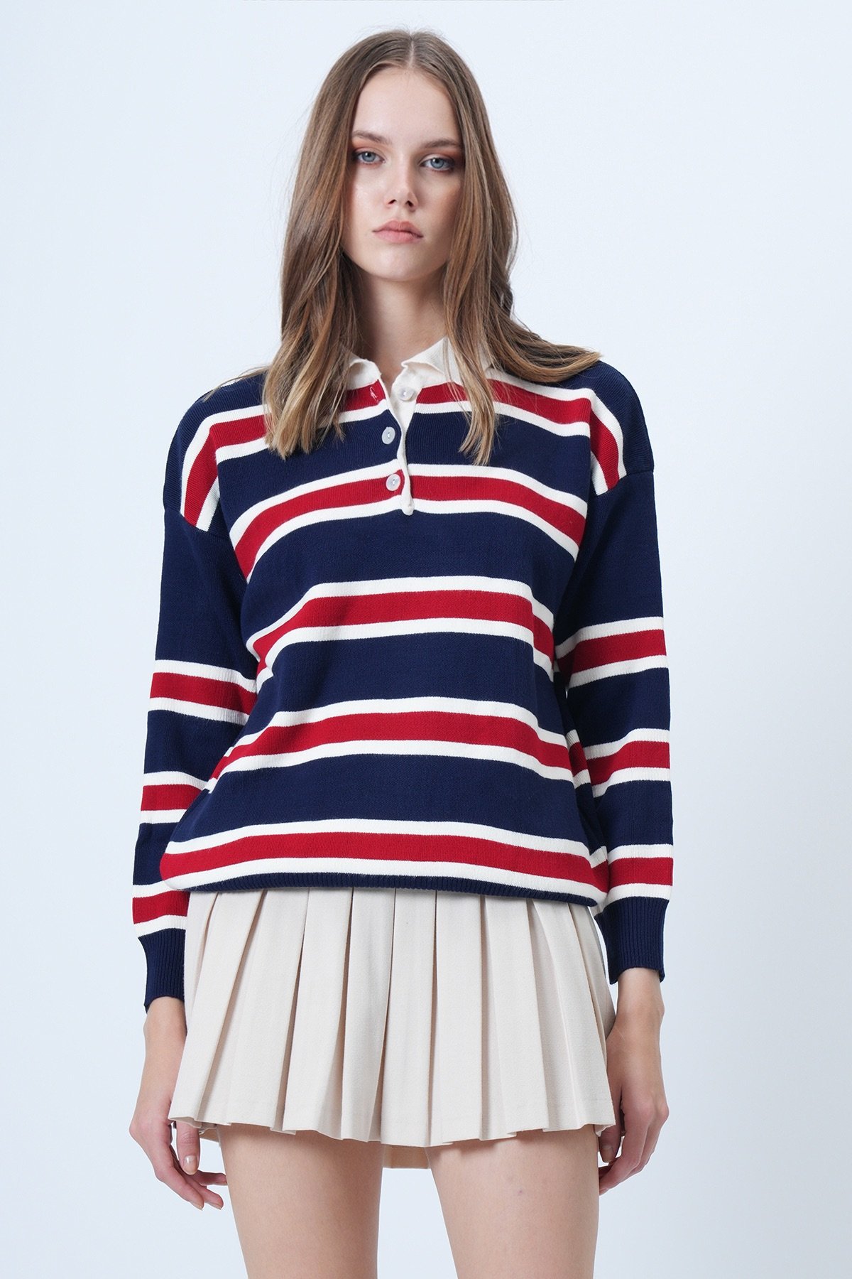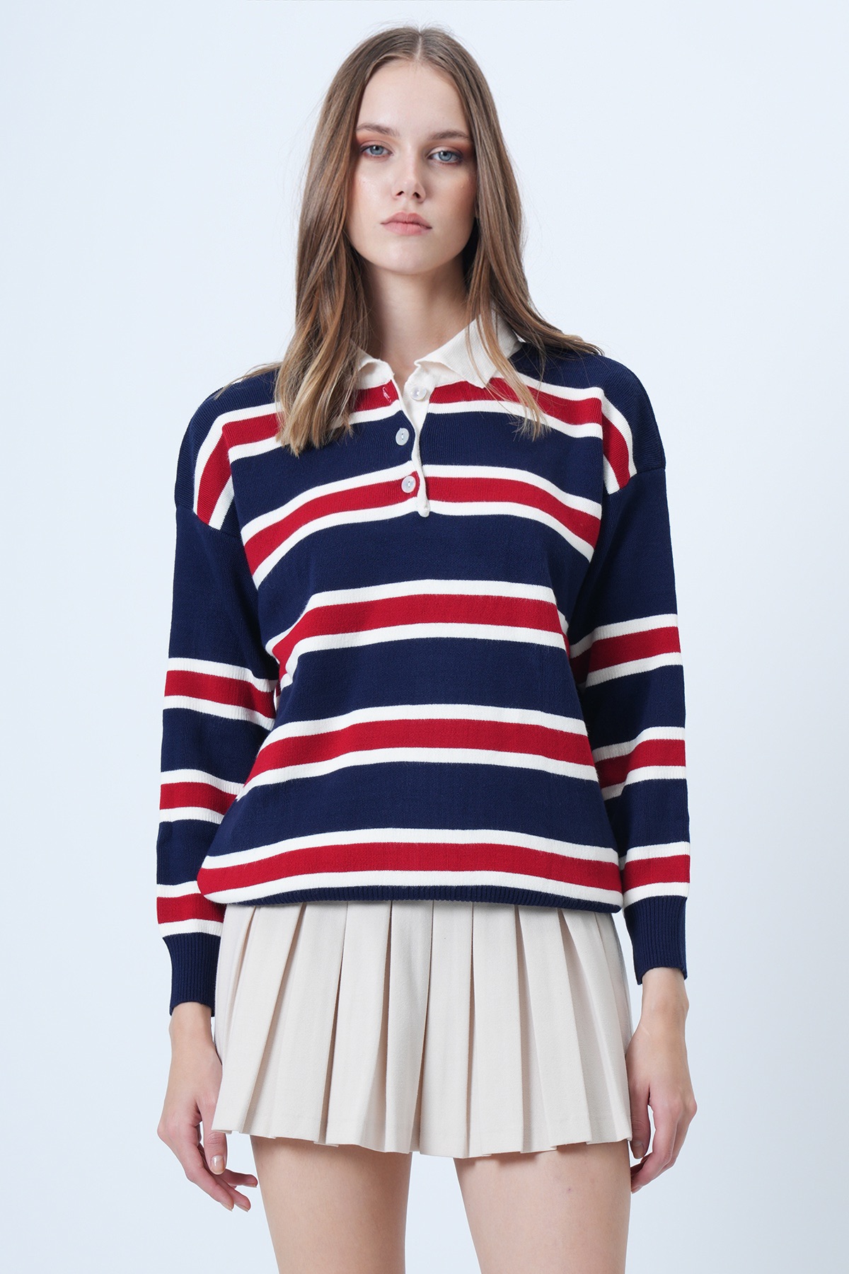 Polo Yaka Çizgili Triko Kazak - BORDO Polo Yaka Çizgili Triko Kazak - Yağ Yeşili Polo Yaka Çizgili Triko Kazak - LACİVERT