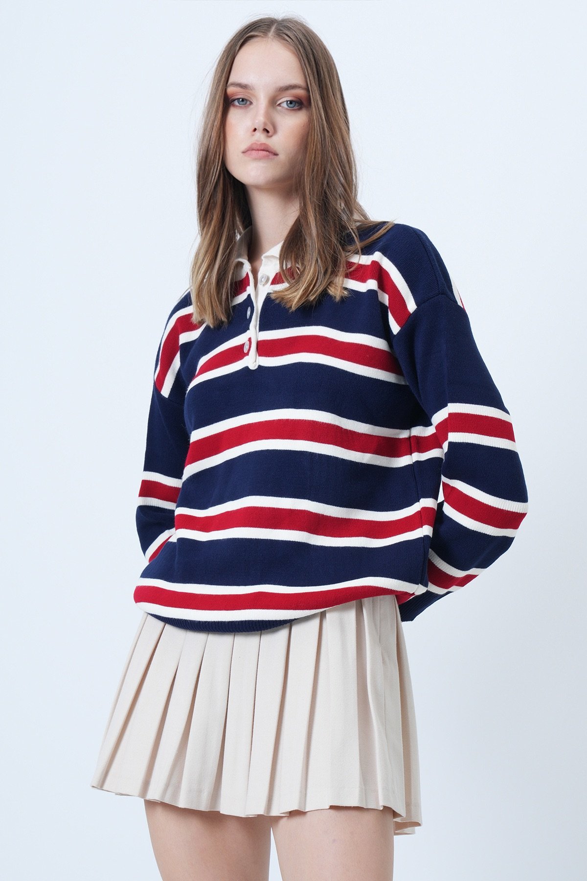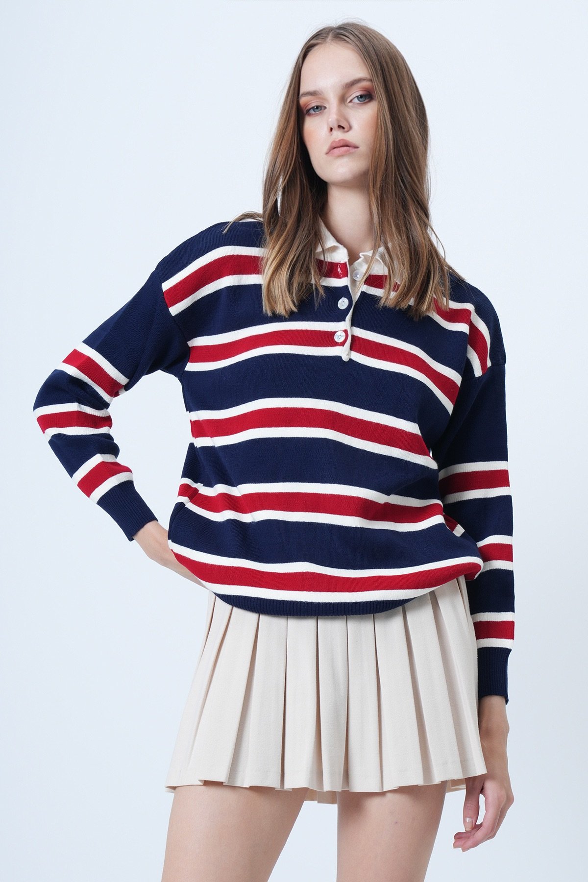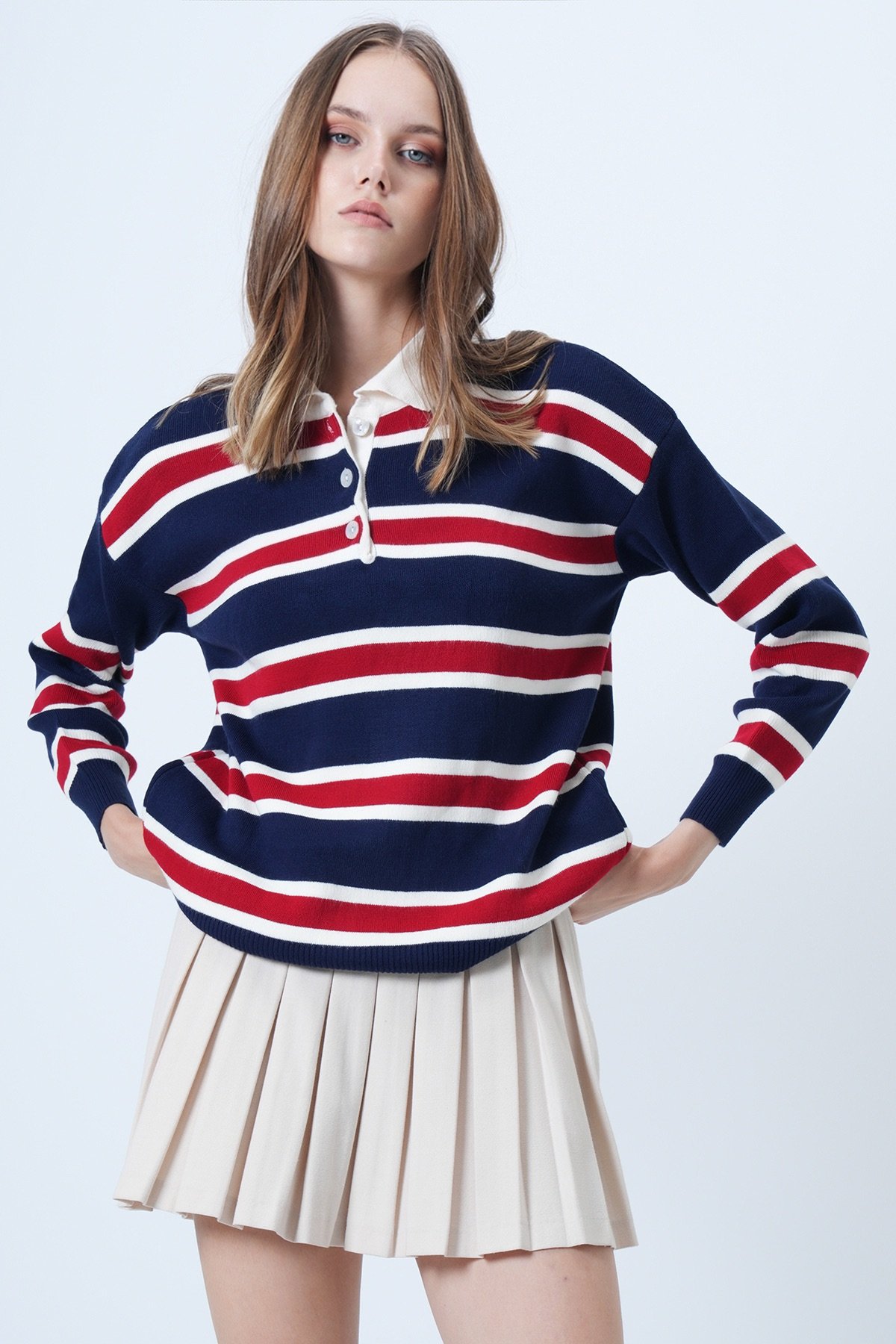 Polo Yaka Çizgili Triko Kazak - BORDO Polo Yaka Çizgili Triko Kazak - Yağ Yeşili Polo Yaka Çizgili Triko Kazak - LACİVERT
