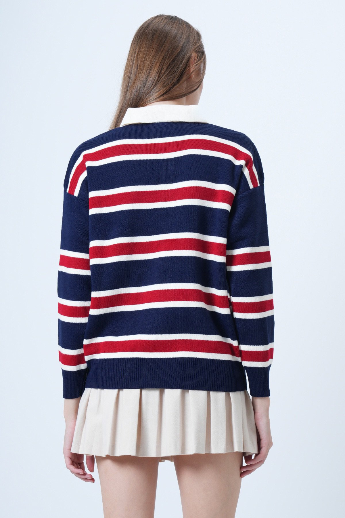 Polo Yaka Çizgili Triko Kazak - LACİVERT (VS01029)