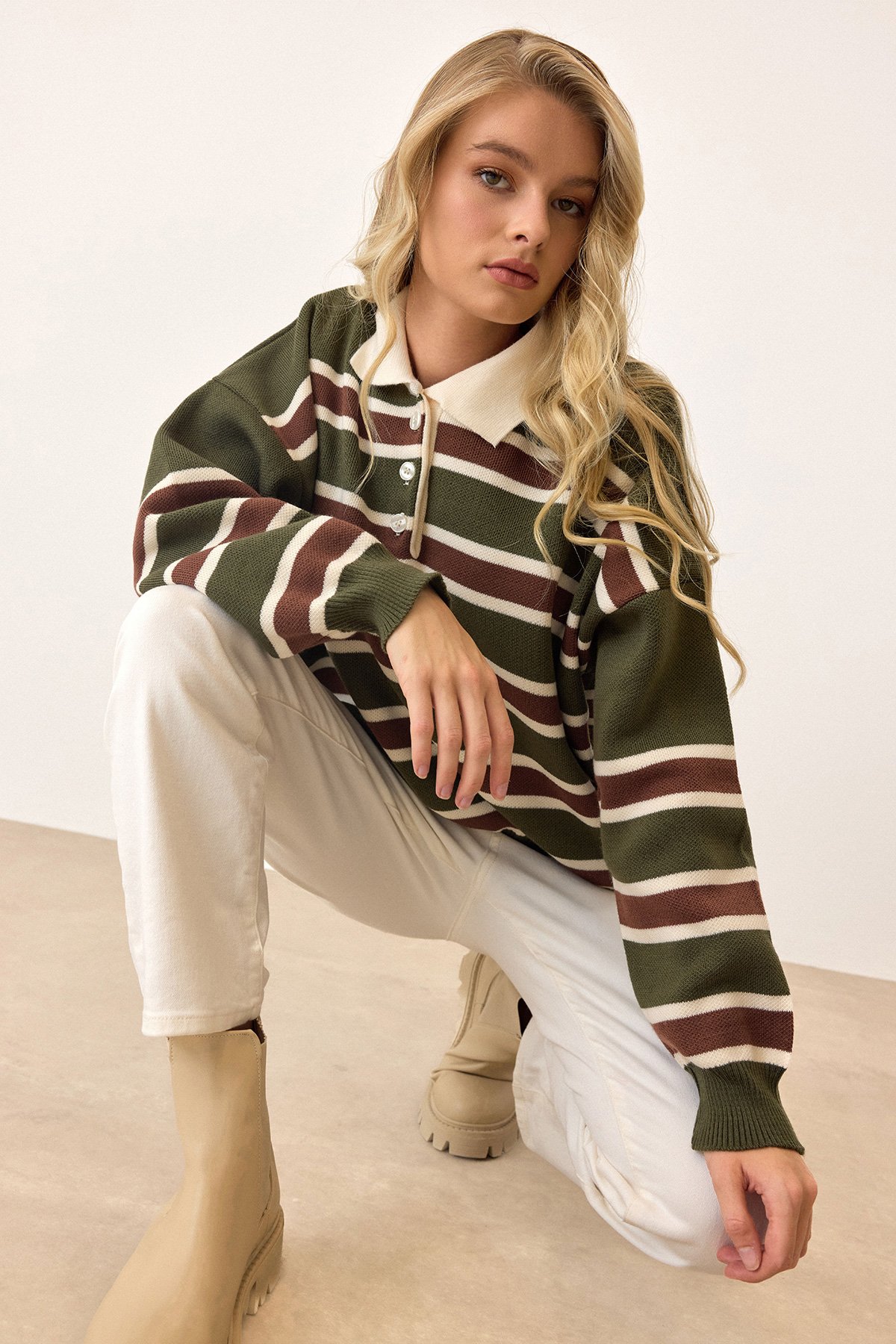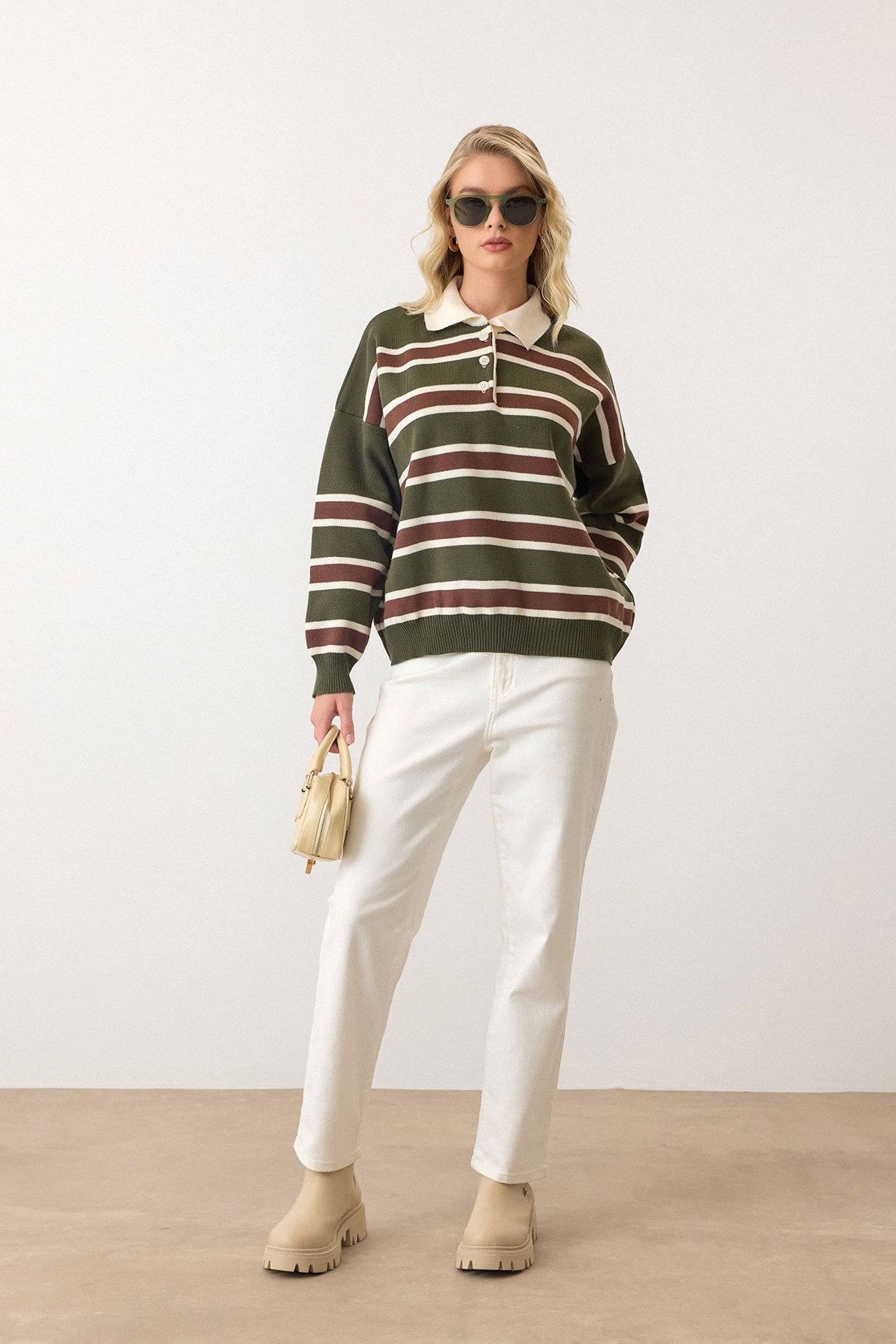 Polo Yaka Düğmeli Triko Kazak - YEŞİL Polo Yaka Düğmeli Triko Kazak - LACİVERT Polo Yaka Düğmeli Triko Kazak - KAHVERENGİ Polo Yaka Düğmeli Triko Kazak - BORDO Polo Yaka Düğmeli Triko Kazak - BEJ