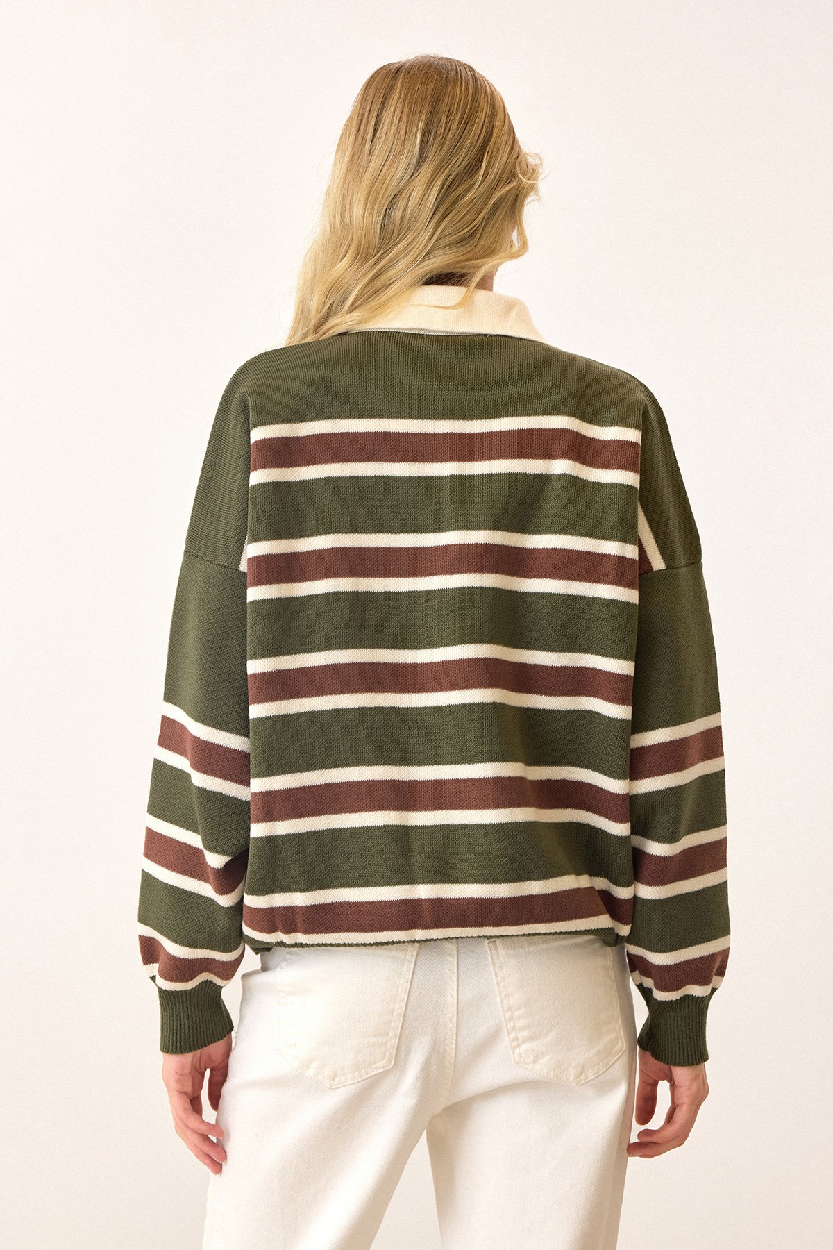 Polo Yaka Düğmeli Triko Kazak - YEŞİL (VS00890)