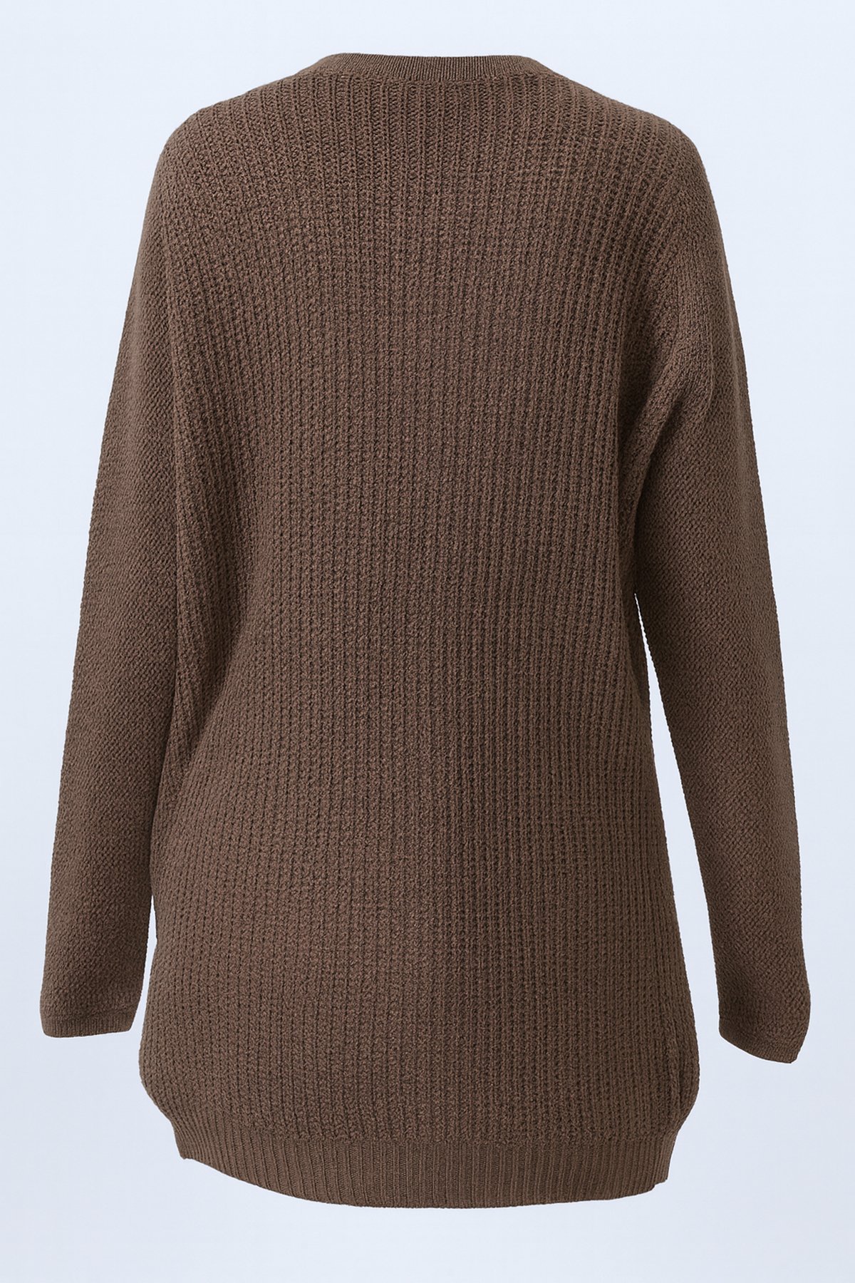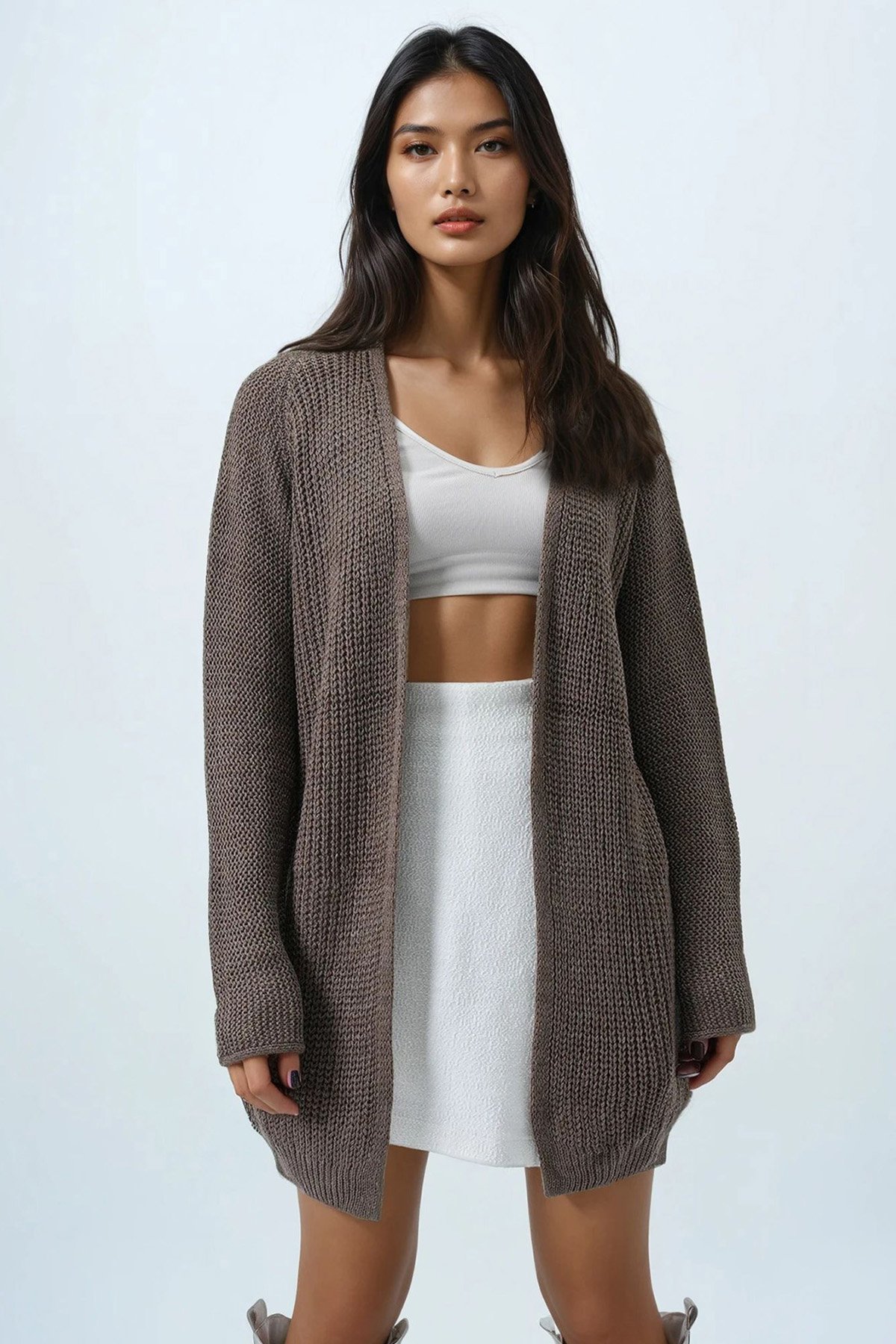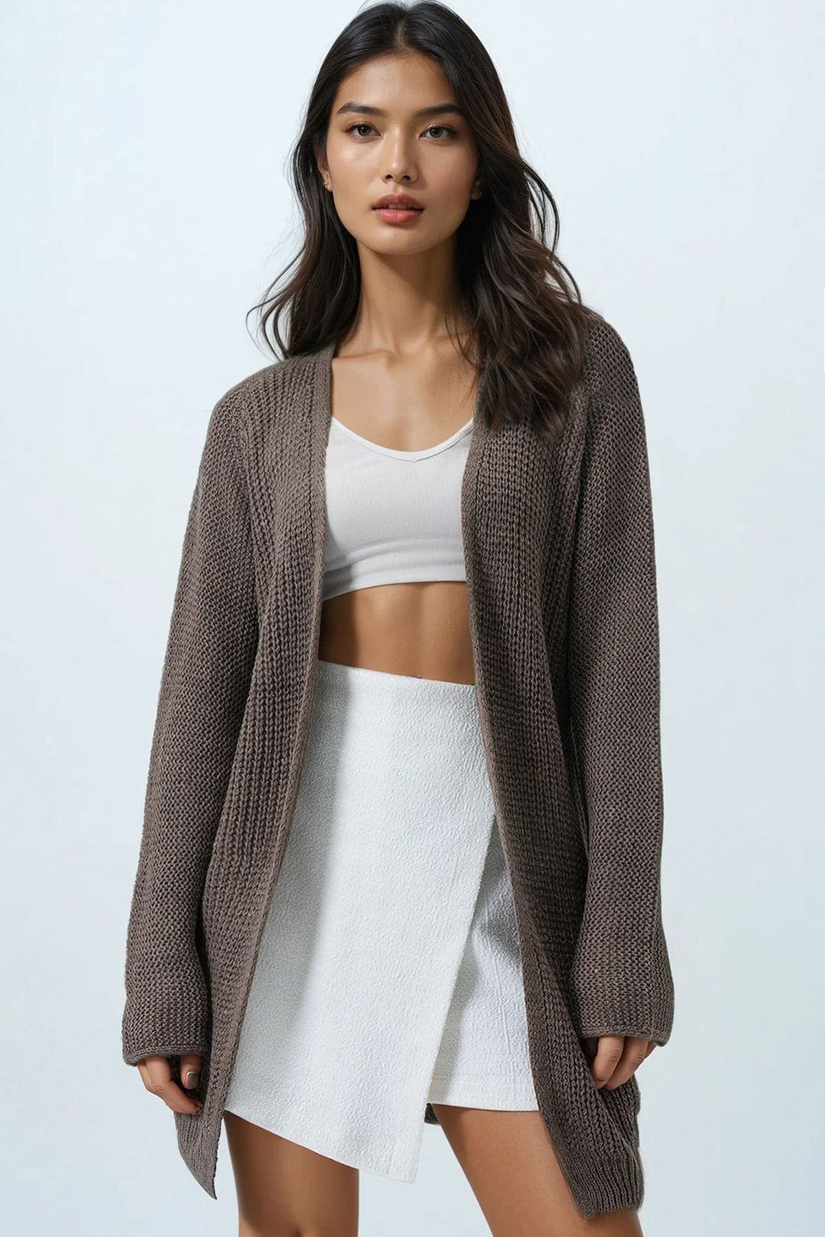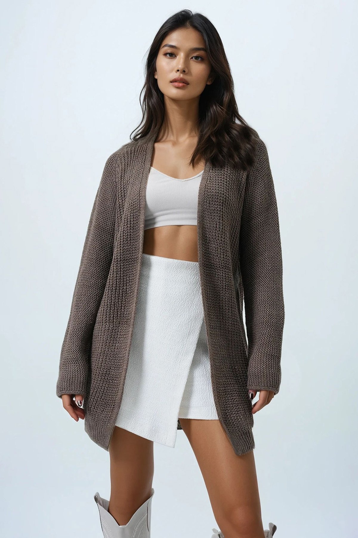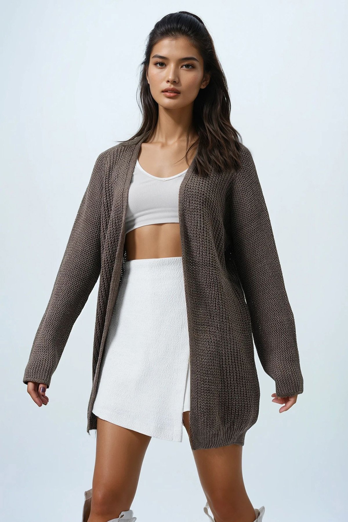 Selanik Örgü Uzun Basic Hırka - Sütlü Kahve (ALC-X14442)