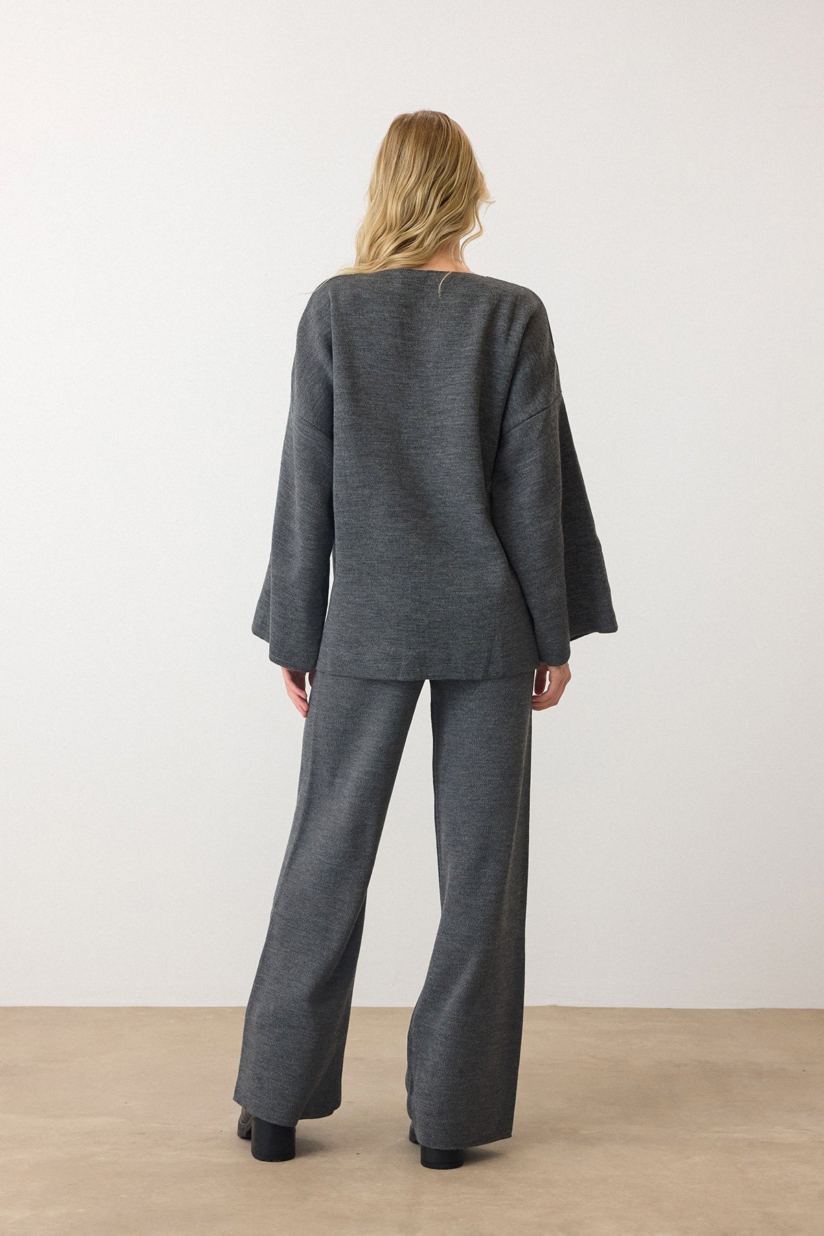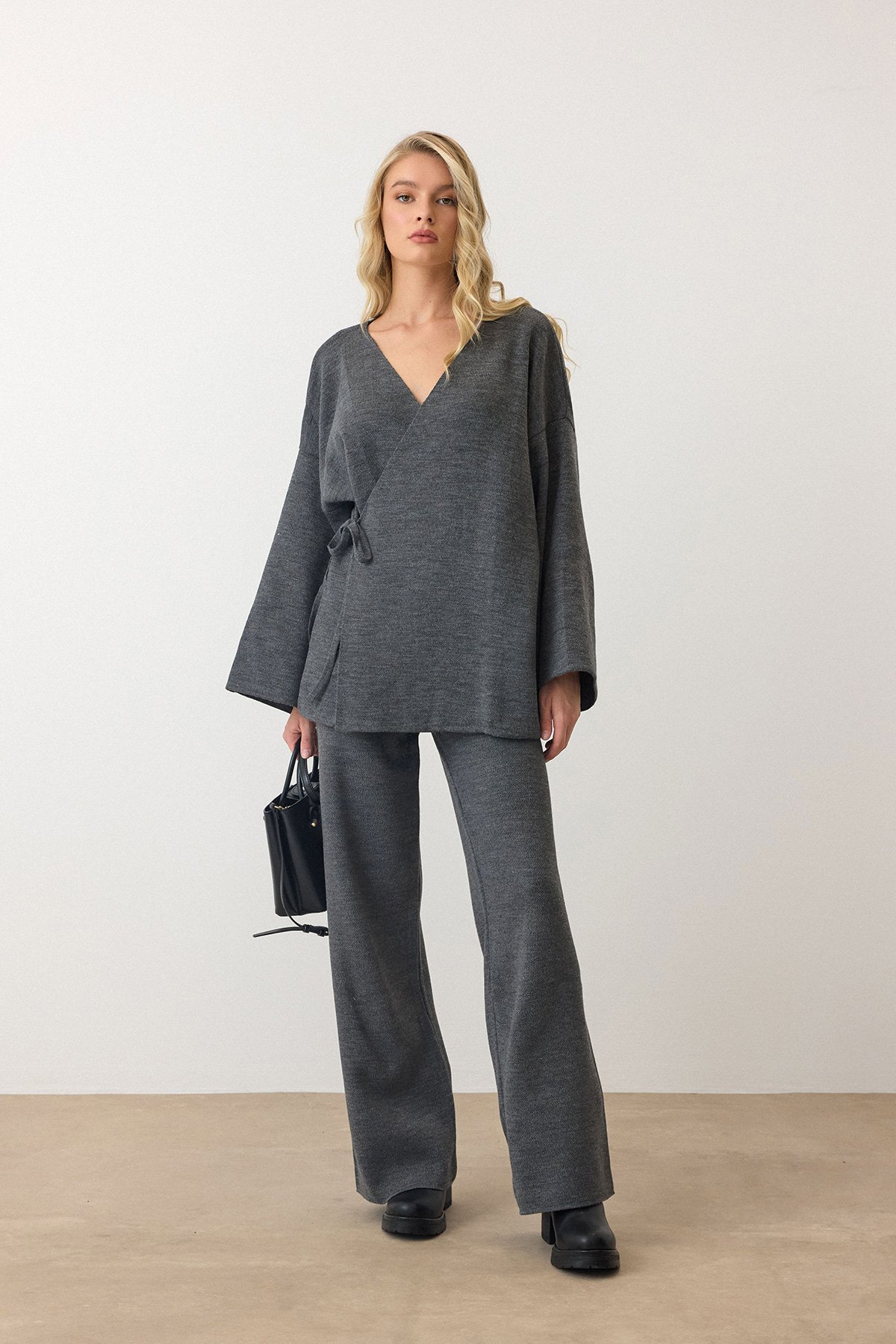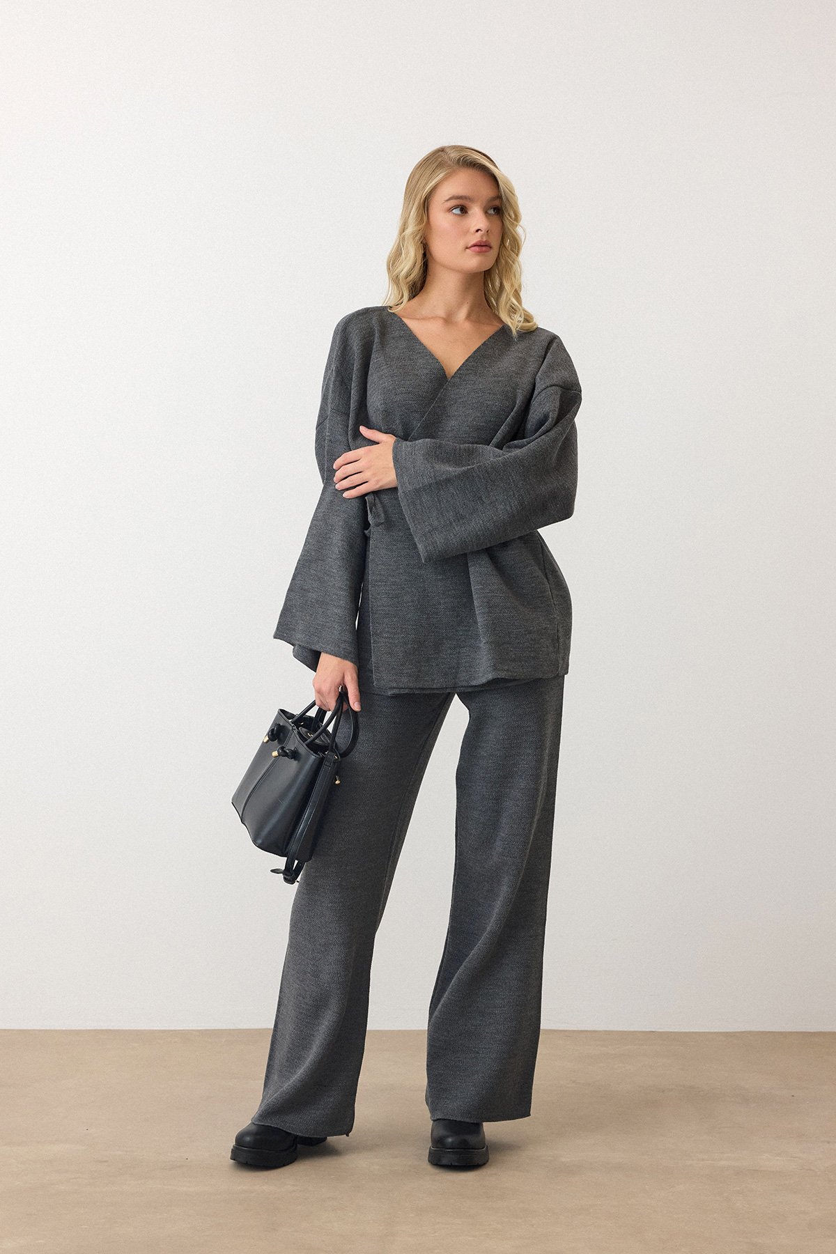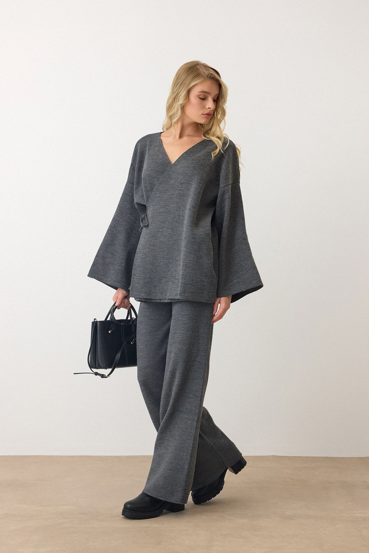 V Yaka Kuşaklı Bol Paça İkili Takım - ANTRASİT V Yaka Kuşaklı Bol Paça İkili Takım - SİYAH V Yaka Kuşaklı Bol Paça İkili Takım - KAHVERENGİ