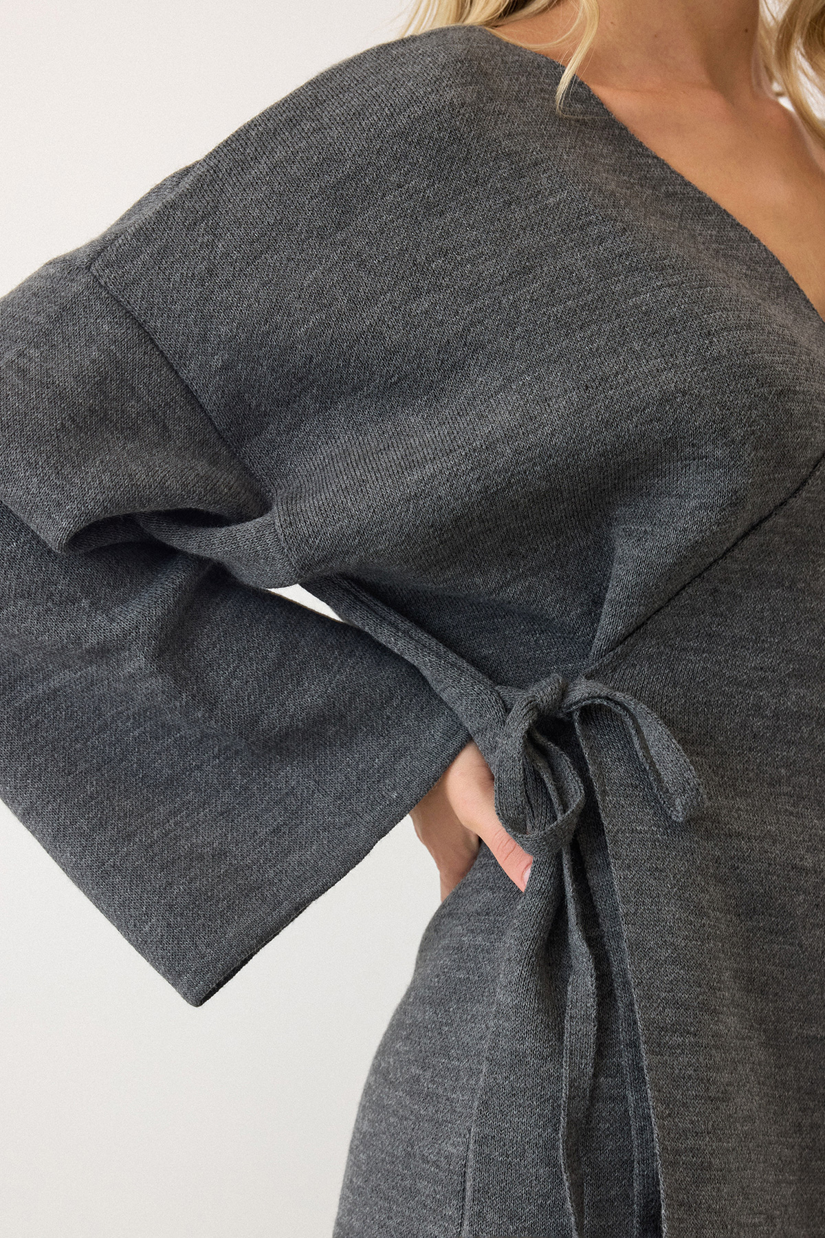 V Yaka Kuşaklı Bol Paça İkili Takım - ANTRASİT (VS00889)