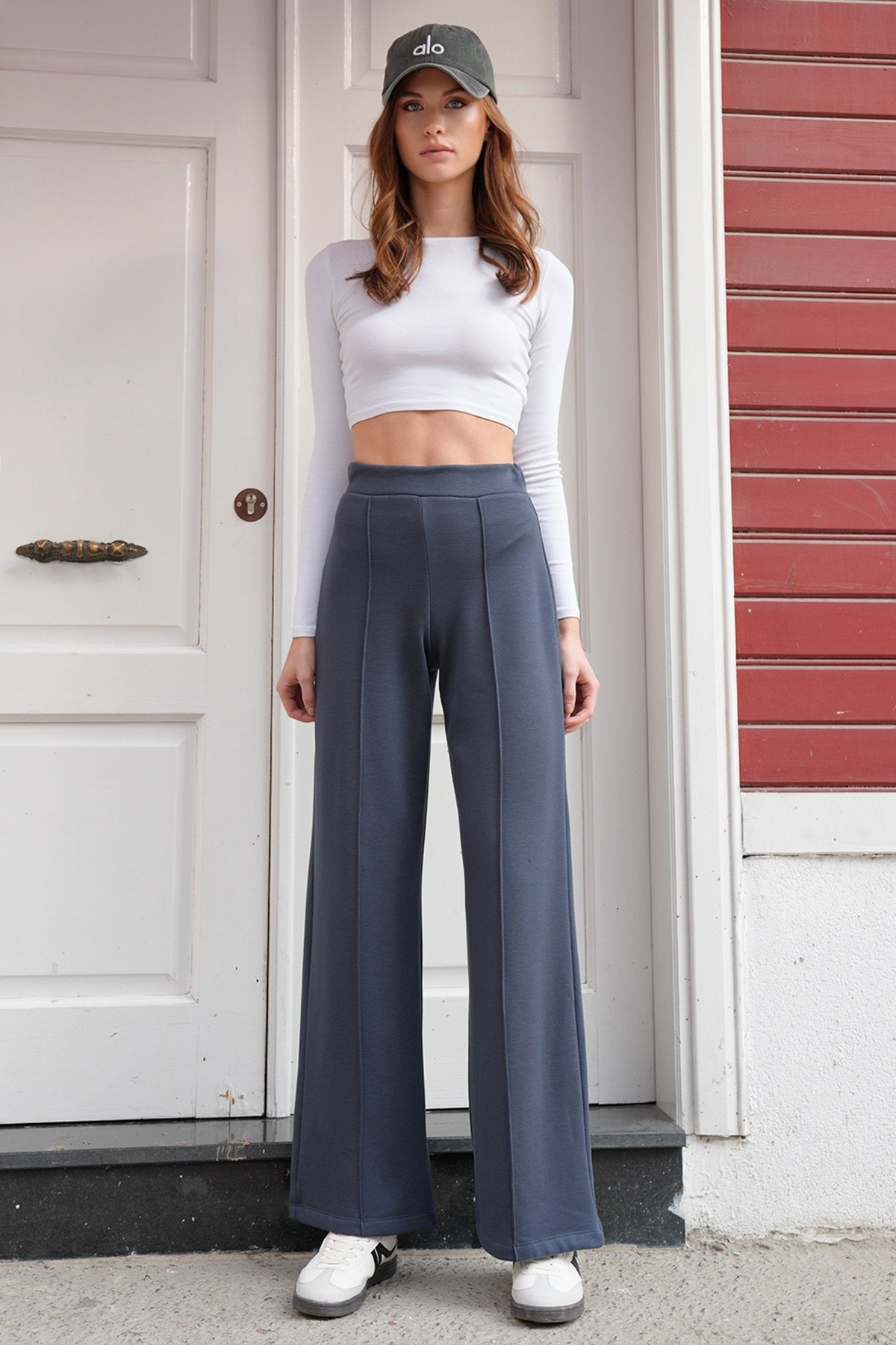Yüksek Bel Beli lastikli Çımalı Palazzo Pantolon - ANTRASİT (VS01226)