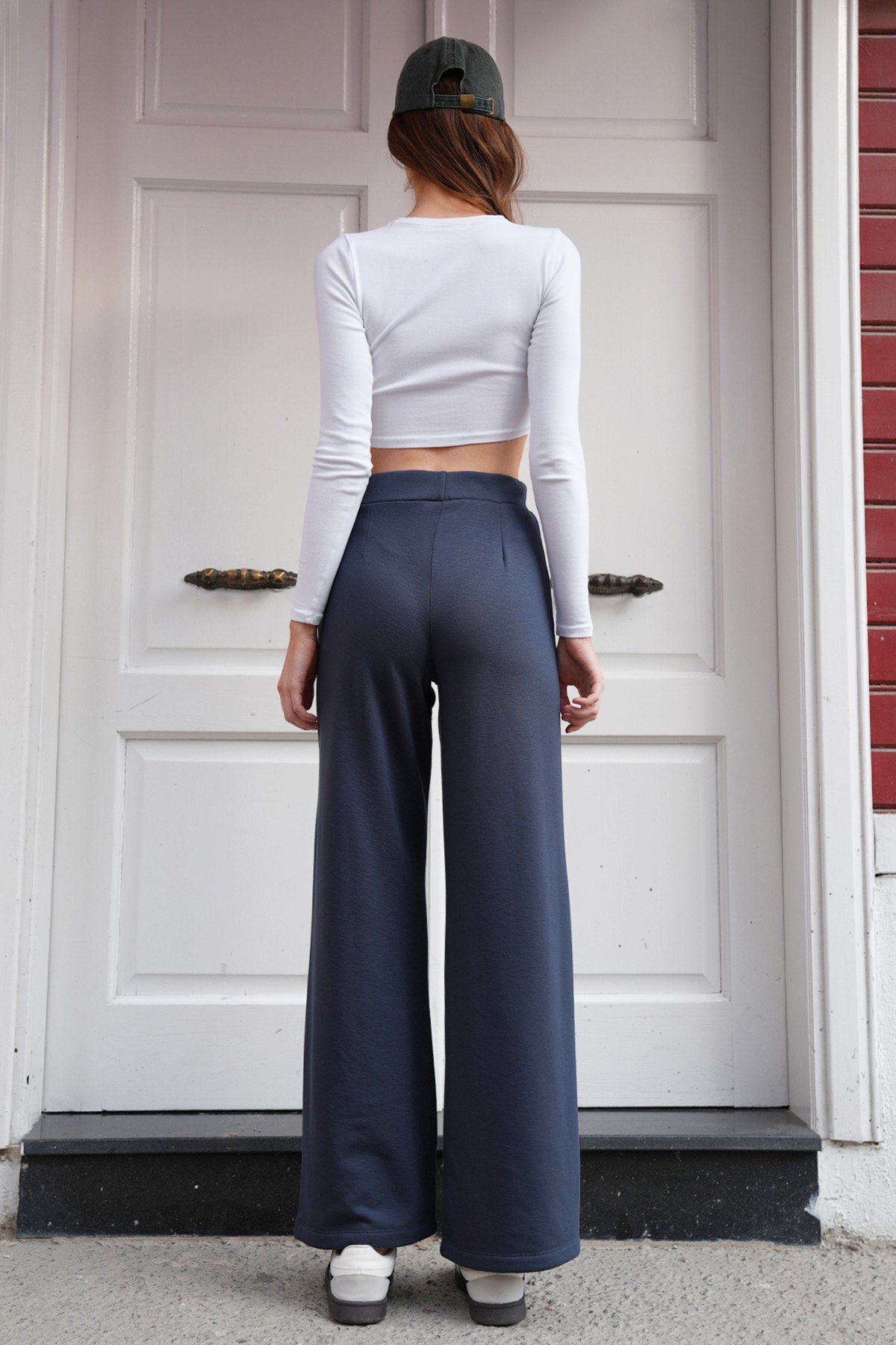 Yüksek Bel Beli lastikli Çımalı Palazzo Pantolon - LACİVERT Yüksek Bel Beli lastikli Çımalı Palazzo Pantolon - SİYAH Yüksek Bel Beli lastikli Çımalı Palazzo Pantolon - HAKİ Yüksek Bel Beli lastikli Çımalı Palazzo Pantolon - ANTRASİT