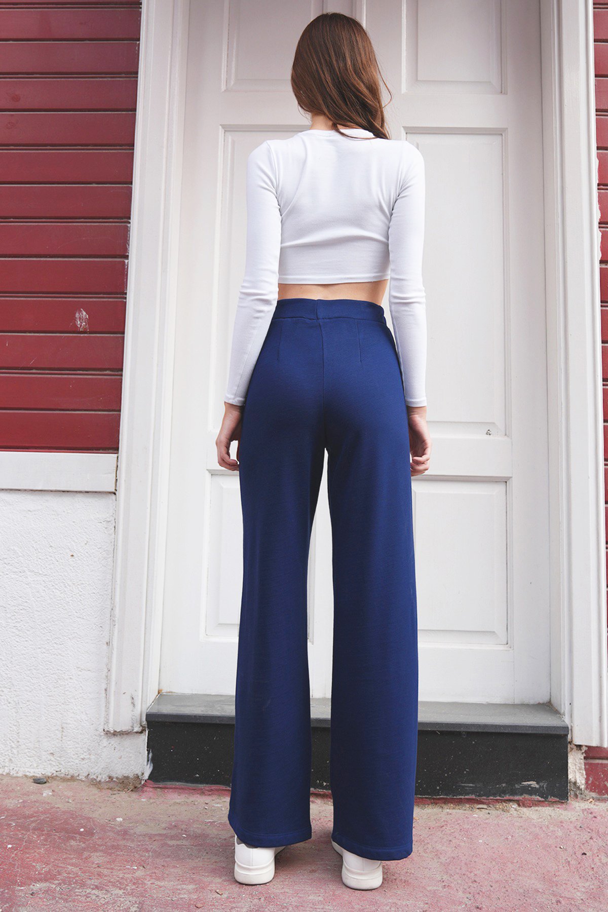 Yüksek Bel Beli lastikli Çımalı Palazzo Pantolon - LACİVERT (VS01226)